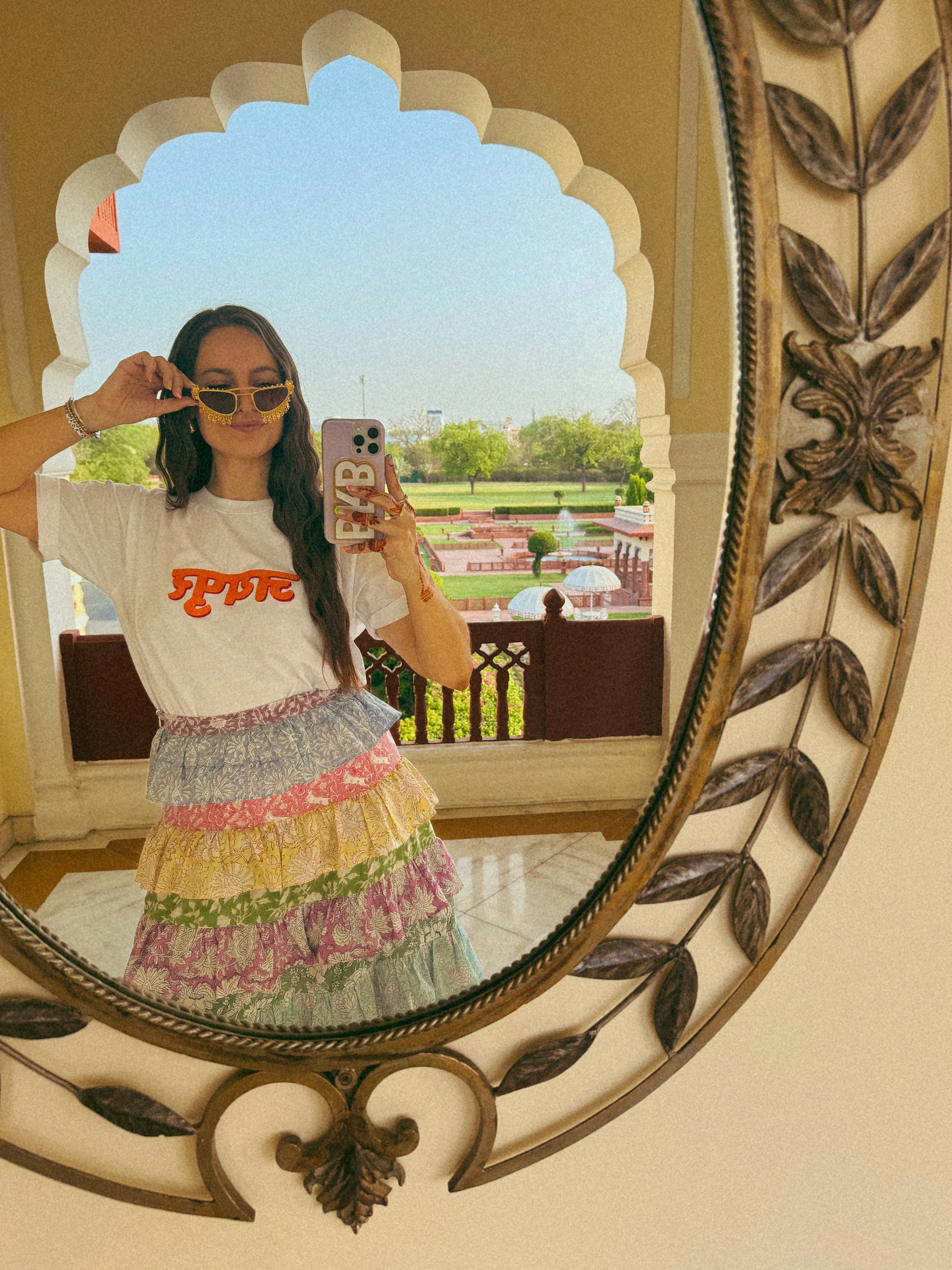 I’m a firm believer that you should always wear what makes you feel like your best self. That said, when traveling in India, it’s important to remember that you’re a guest in a more traditional culture. Dressing modestly, think long, loose, flowy silhouettes, not only helps you stay cool in the heat, but also minimizes unwanted attention and shows respect for local customs.