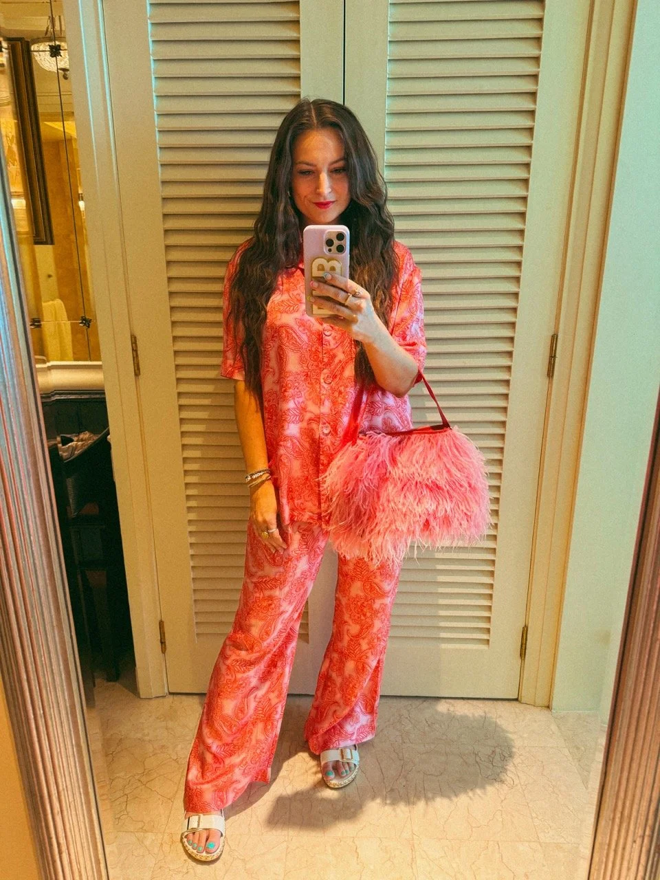 Loose, lightweight top-and-bottom sets are one of my go-to choices for dinner while traveling in India. They feel polished without being fussy, stay comfortable in warm evening temperatures, and photograph beautifully. I love that each piece can be styled separately, giving you multiple effortless dinner looks.